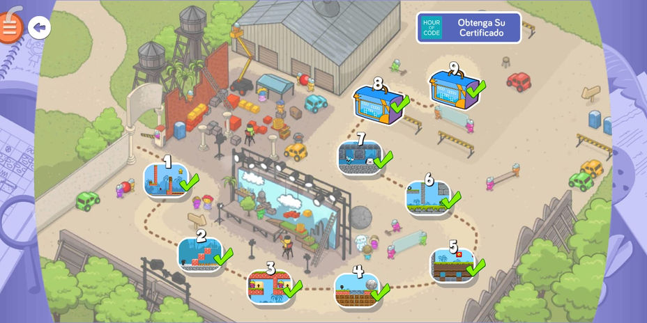 Luego, en la sección de crear tuvimos que superar las correspondientes nueve misiones en el apartado de CREAR UN JUEGO.